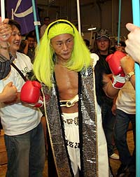 「スピリチュアル・カット」と命名した美輪明宏風の黄色いかつらで入場。2回に右フックで相手のまぶたをカットすると、終始ペースを握った。試合中にかつらがはずれた05年12月13日以来のKO勝ちに「あのときは恥ずかしくて、自殺も考えた。きょうはTKOだけど、うれしい」。