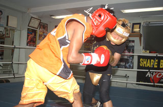 キムの大冒険は成功するか――再起戦で3階級上げてOPBF・L・ヘビー級王者ヒース・ステントン(豪)に挑戦するクレイジー“タイガー”キム(ヨネクラ)が16日、JBC(日本ボクシングコミッション)で計量をパスし、いよいよ明日のゴングを待つのみとなった。今回、これまでのS・ウェルター級(69.85キロ上限)より約10キロも重いL・ヘビー(76.32~79.38キロ)での試合となるだけに、体重調整がひとつの焦点だったが、キムは服を着たままハカリに乗り79.15キロを記録。関係者情報によると、計量前に食事も摂ったらしく、実際はさらに軽めとみられる。「練習では汗がよく出たし、疲れないだろうか、と不安もある。でも試合だけに集中してトレーニングできた」(キム)。同じく174ポンド1/2(79.15キロ)でクリアしたステントンについては「(握手をしたら)柔らかい手をしていた」と感想を述べた。ちなみにキムが勝てば、現在保持するS・ウェルター級王座に続き2階級制覇となる。
